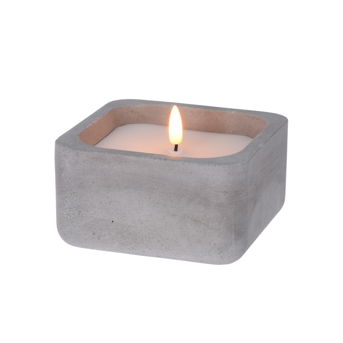 Σε μοντέρνο σχεδιασμό, με δοχείο κατασκευασμένο από μαγνησιακή πλάκα MGO, ένα ελαφρύ και ανθεκτικό υλικό και διαστάσεις 12 x 12 x 6,5 cm. Η φλόγα είναι λαμπάκι LED με θερμό φωτισμό και λειτουργεί με μπαταρίες 2 x 1.5V AA (δεν περιλαμβάνονται). Αποτελεί μια ξεχωριστή επιλογή για τη διακόσμηση του σπιτιού.