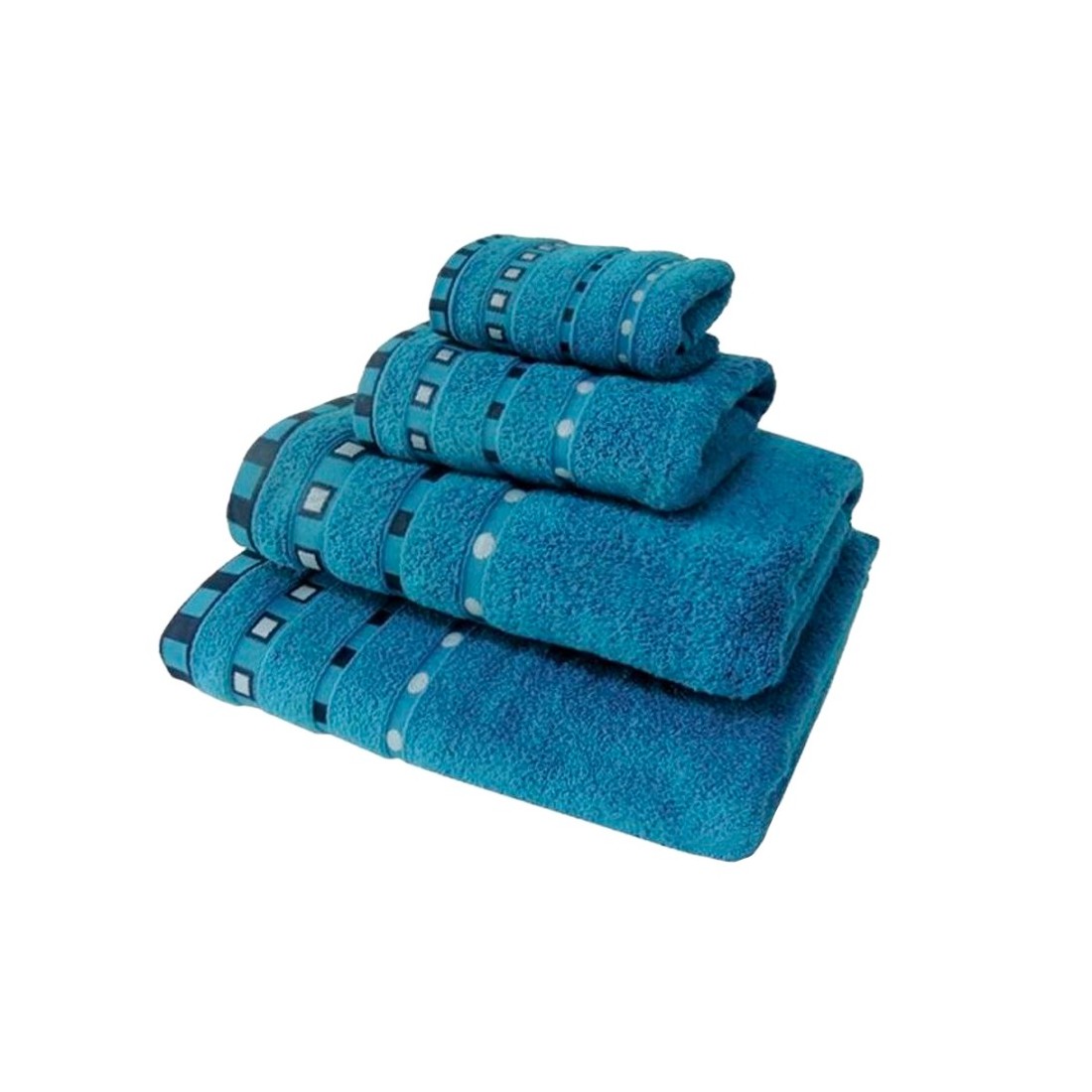 Πετσέτα Προσώπου με Γεωμετρικά Σχέδια Πετρόλ Yana 45x80cm
